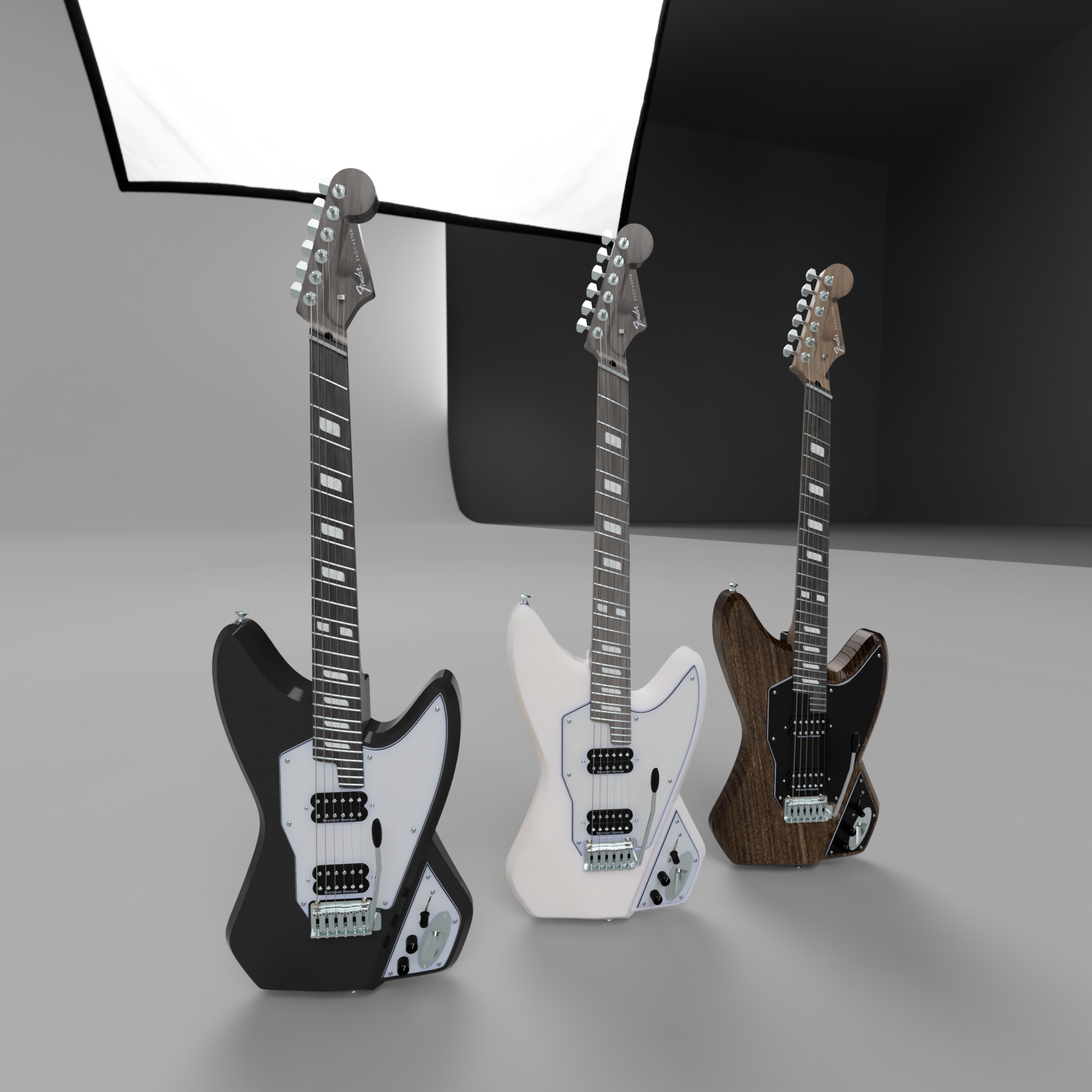 I love playing and working on electric guitars so it only makes sense that I've designed a few of my own! Unfortunately I haven't had the opportunity to build any of my designs in real life, but that doesn't you mean you can't look at some of my beatutiful renderings and technical drawings! Click any of the images below to see more.